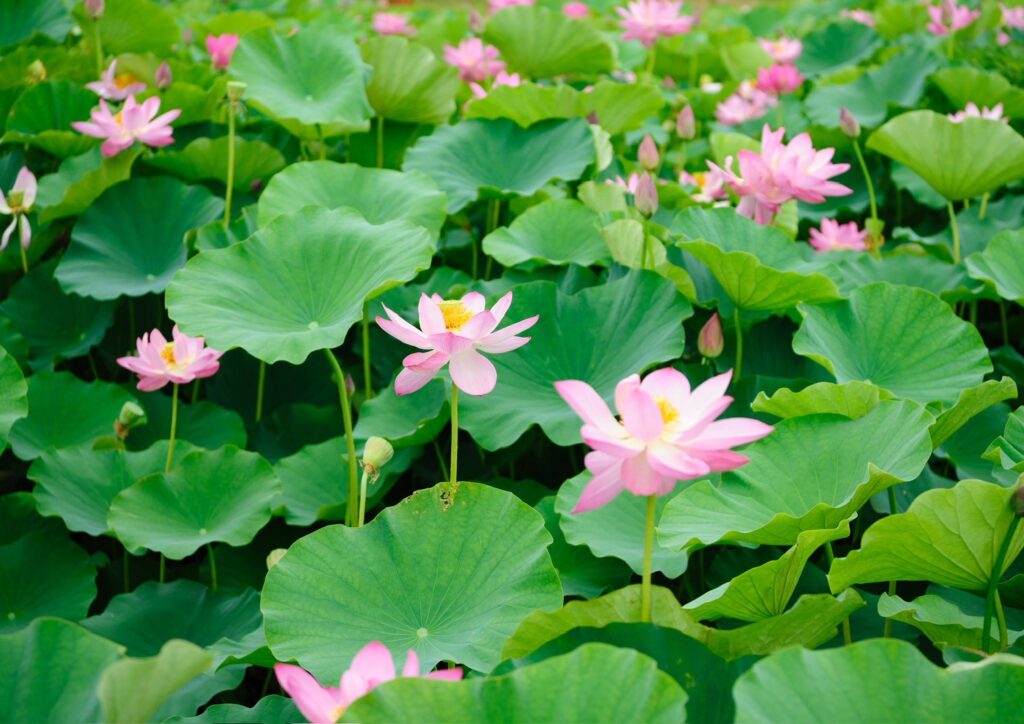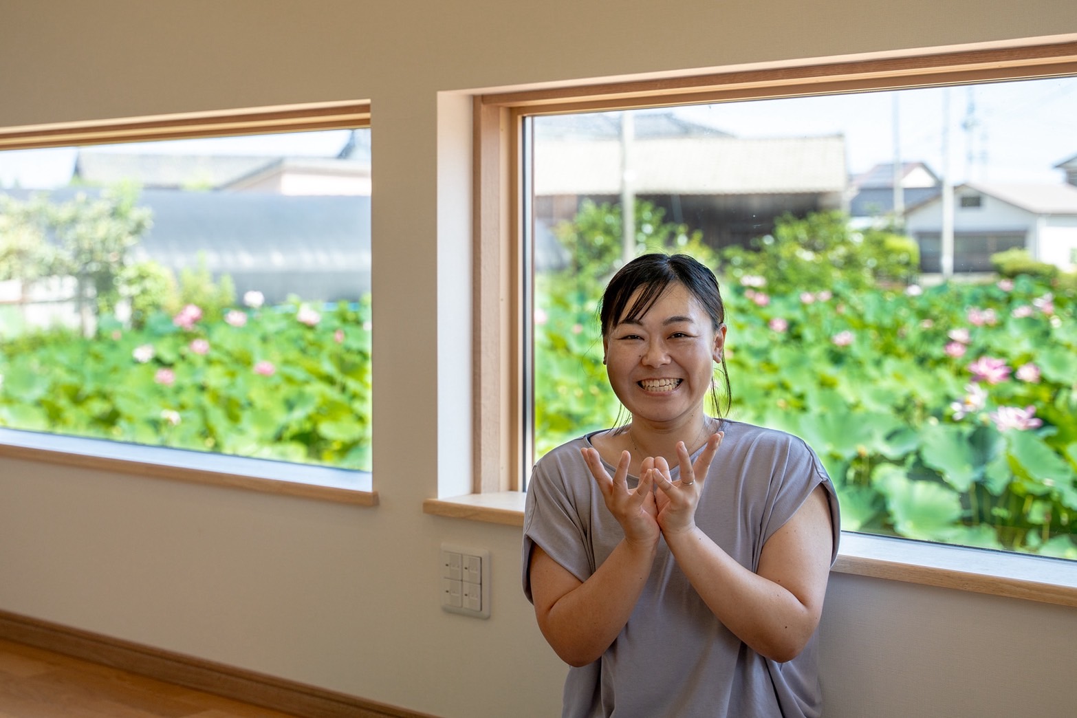 大きな窓からは青空や四季を通しての景色が見え、夏は目の前に蓮の花が咲きます。