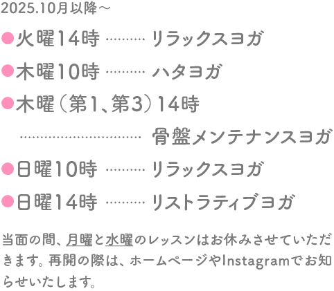 ヨガに集中出来る静かな環境のなか、最大5名までの少人数制レッスンを行っています。